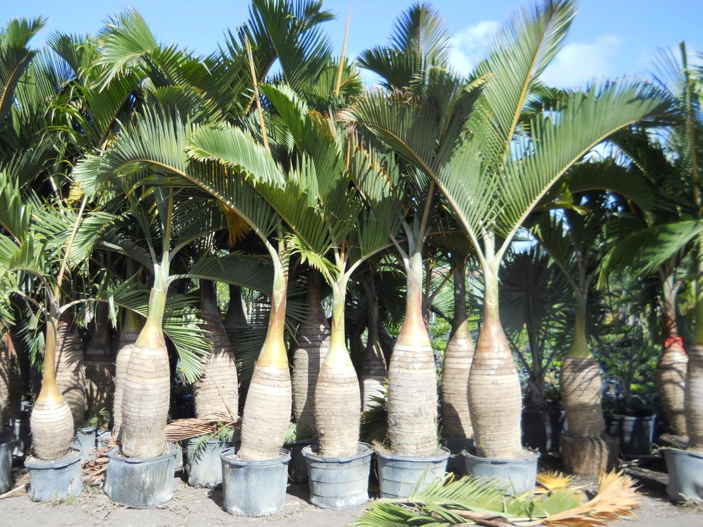 Bottle Palm ek tropical decorative plant hai jo apni unique trunk shape (bottle jaisi) ki wajah se bahut popular hai. Yeh mostly parks, resorts aur luxury gardens me use hota hai.
